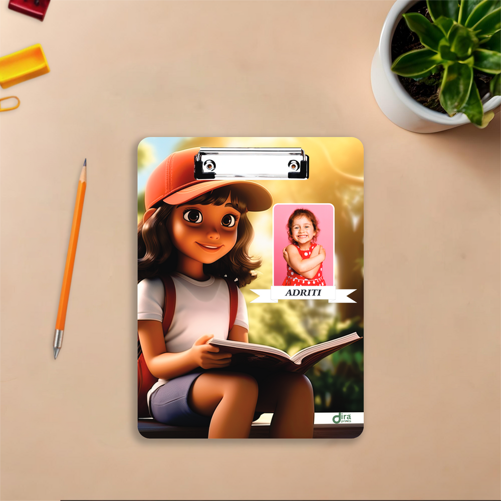 Inspire a lifelong love of reading and learning with our wonderful Custom Reading Girl Theme Exam Board! This design features an animated girl with a backpack, happily engrossed in a book, making it the perfect visual reminder to focus and embrace knowledge. It is the ultimate personalized A4 clipboard for young scholars and dedicated students.