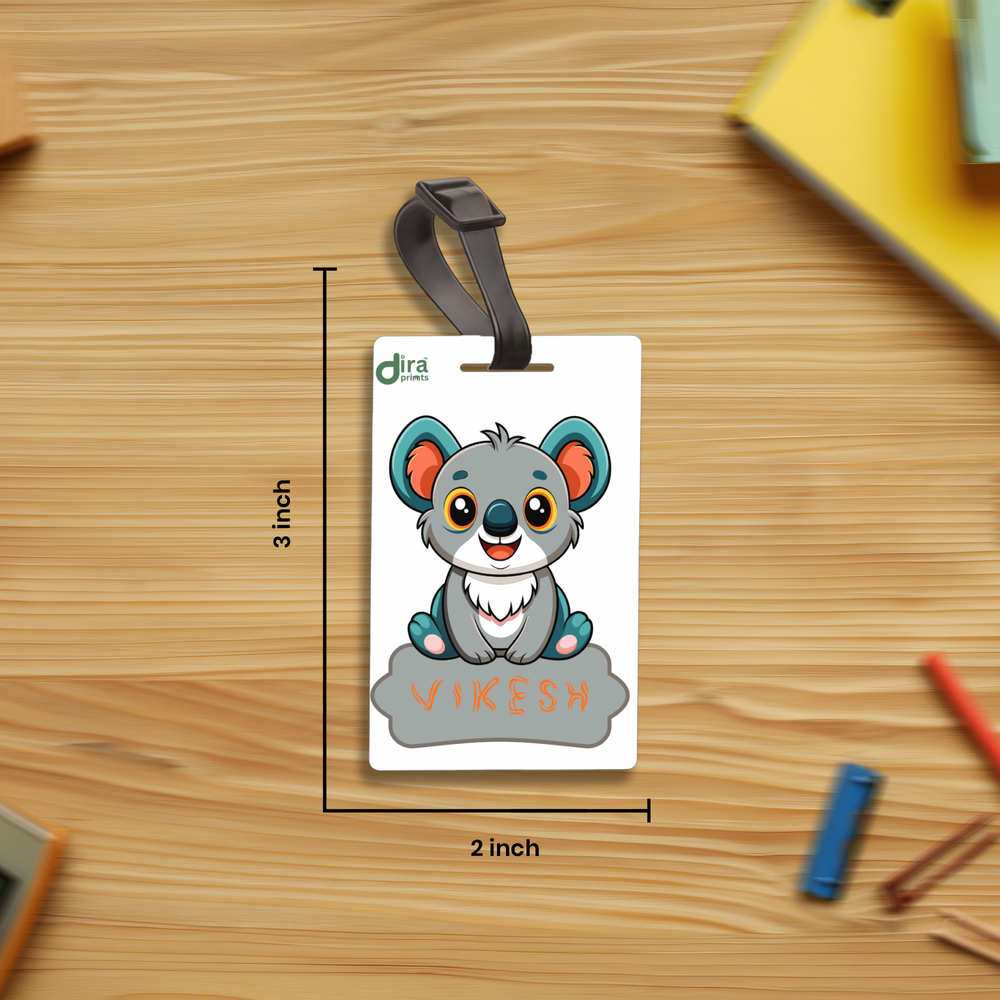 Make identifying bags a joyful experience with the utterly charming Personalized Cute Koala Bag Tag from Diraprints! This delightful tag features a friendly, cartoon koala with big, innocent eyes and fuzzy blue-grey ears, sitting patiently beneath your child's name.