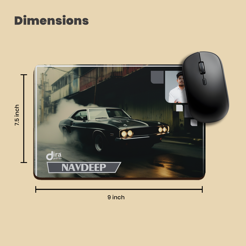Built for speed and precision, the smooth surface ensures excellent mouse control for both intensive work and performance gaming. By adding your photo and name, like NAVDEEP, you create a highly personalized, unique accessory that reflects your bold style and love for classic automotive legends.