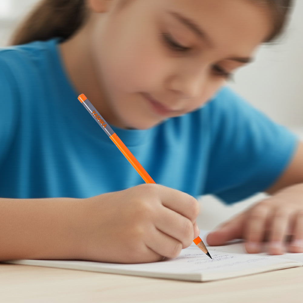 Clear, Durable Name Print: Names (like "Srishti Reddy" or "CRUSHI") are printed professionally on the barrel in a clear font, ensuring the customization lasts as long as the pencil itself.