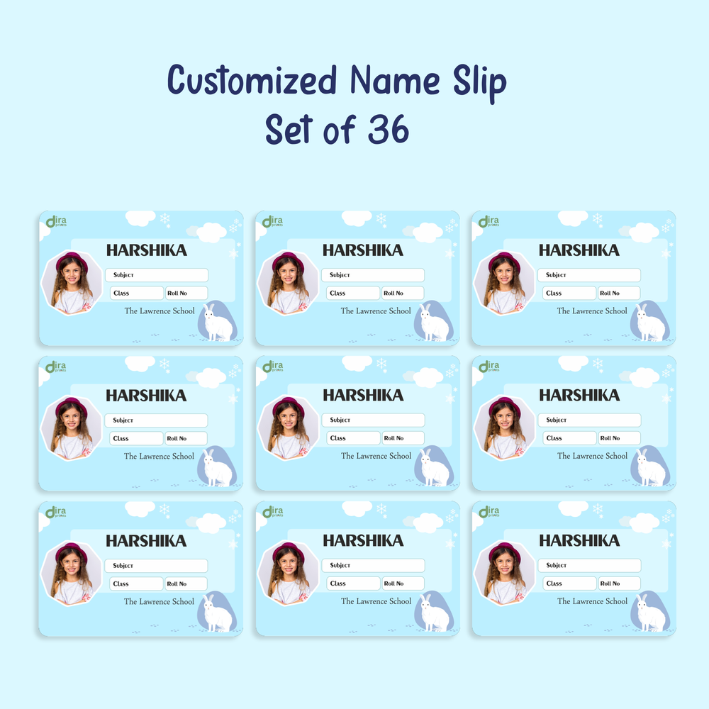 Add a touch of playful speed and softness to your child's belongings with the adorable Personalized Rabbit Name Slip from Diraprints! This charming name slip features a graphic of a cute bunny or rabbit, often associated with springtime, gentleness, and speed. The sweet, universally appealing graphic is perfect for young children who love small animals and gentle, cozy designs.